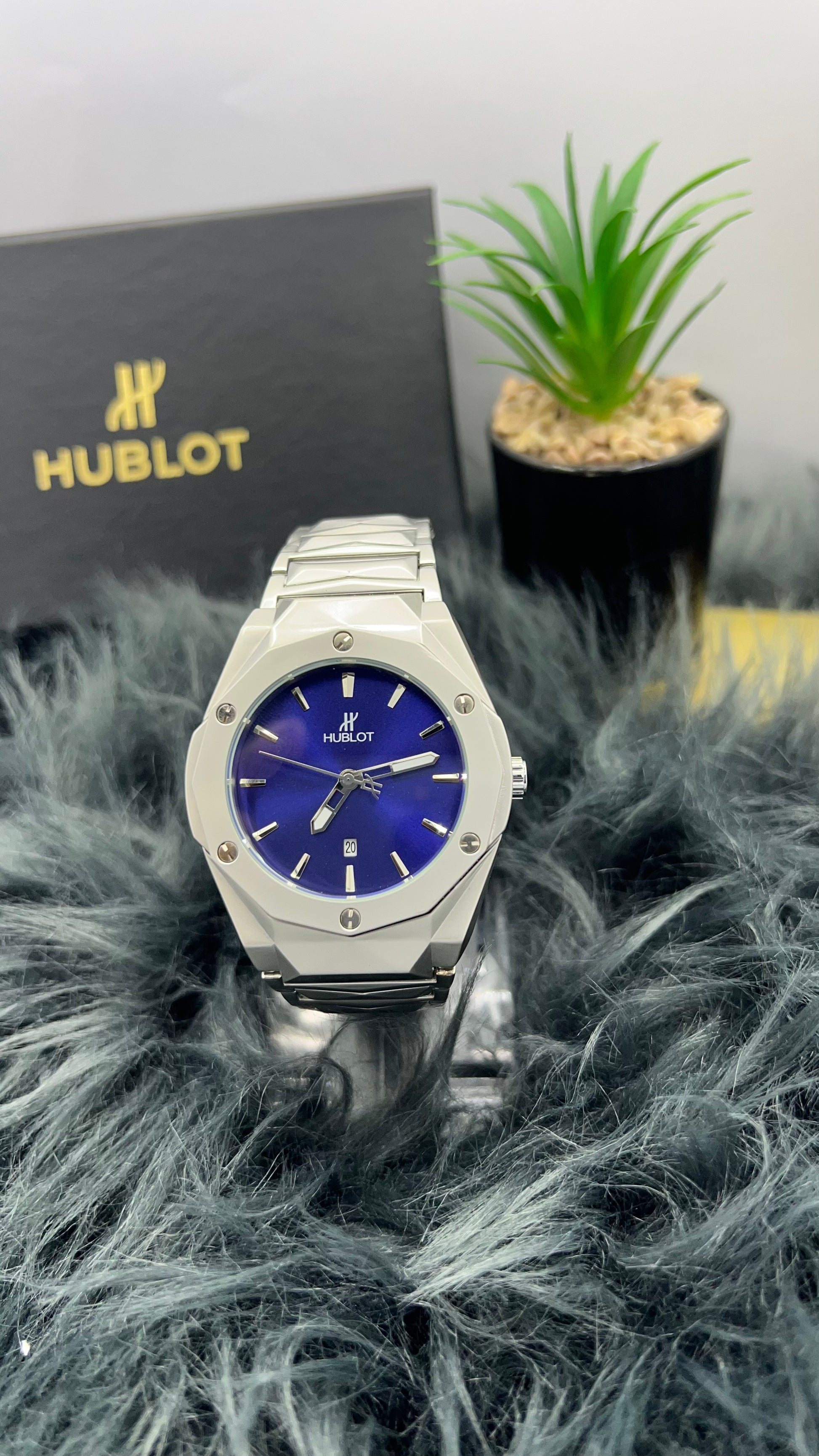Elevate your style with the R.R Timepieces Luxury Stainless Steel HUBLOT Watch with Date and a Black Dial, a perfect balance of modern design and timeless elegance. Crafted with premium materials, this watch is built for both durability and sophistication.